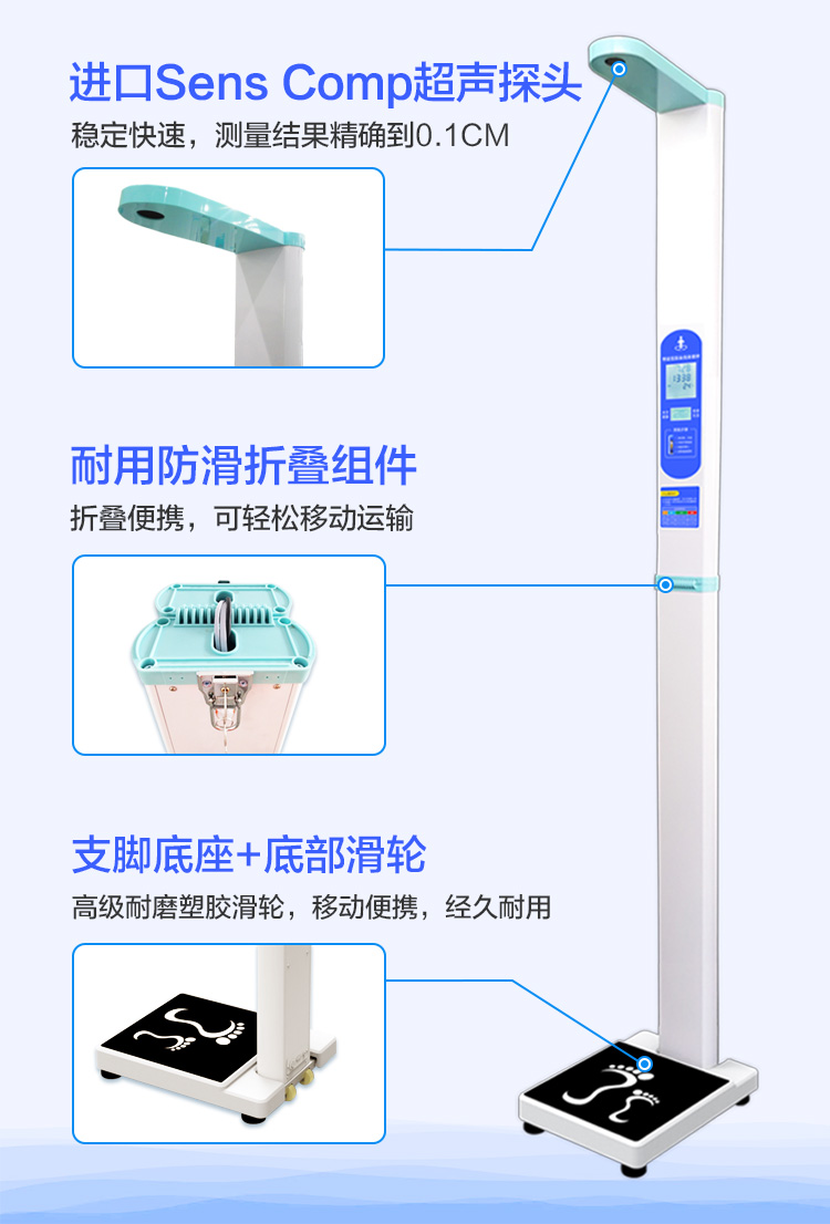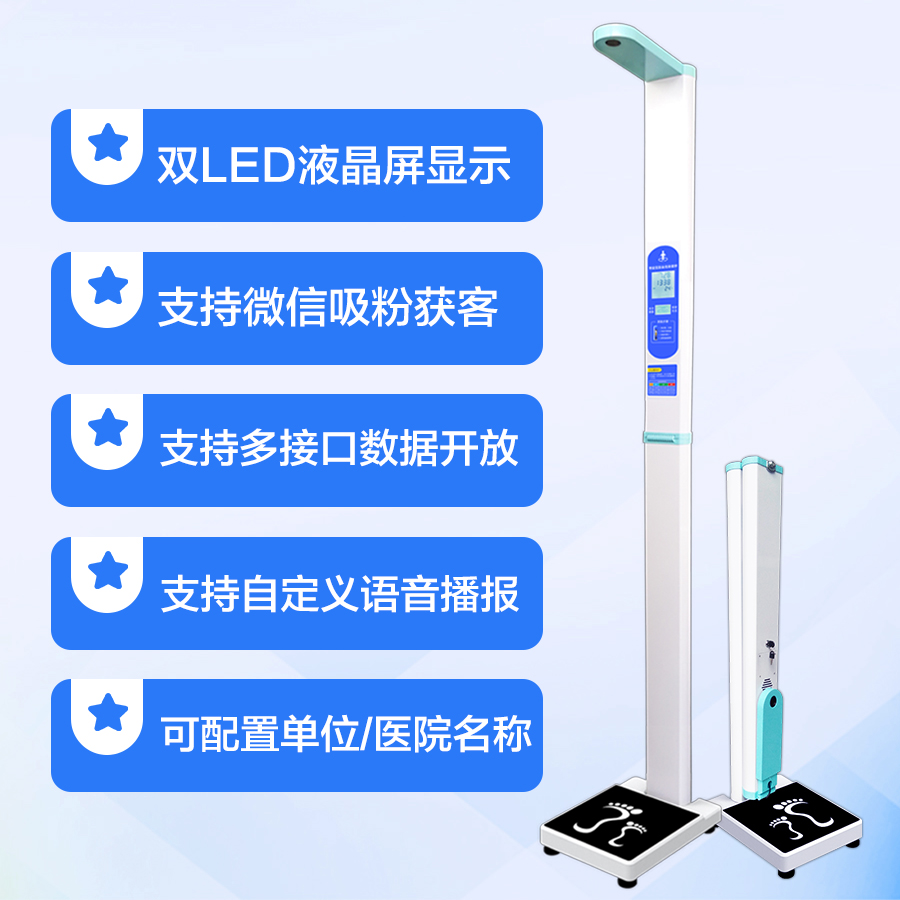 上禾SH-201智能雙屏身高體重測(cè)量?jī)x,適合90%以上的春季體檢使用場(chǎng)景,雙屏顯示、可折疊、可設(shè)置您的專屬宣傳語(yǔ)、全自動(dòng)測(cè)量、語(yǔ)音播報(bào)、數(shù)據(jù)傳輸?shù)龋胍墓δ?,它都有?/p>